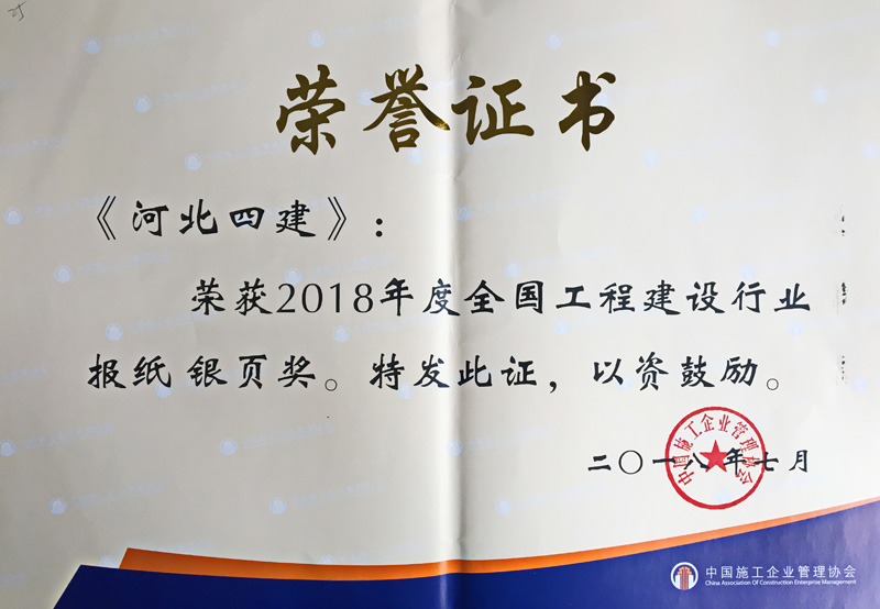 全國(guó)工程建設(shè)行業(yè)報(bào)紙銀頁(yè)獎(jiǎng)