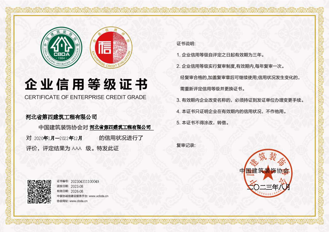 2023年河北省建協(xié)AAA信用等級(jí)證書(shū)