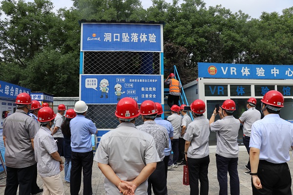 隨后,參加活動的黨員在項目黨支部書記的引領下來到河北四建煙廠項目現(xiàn)場,首先映入眼簾的是排列整齊的工程概況、安全分級管控等十二牌六圖。“紅、黃、蘭、綠四種顏色清楚的區(qū)分了現(xiàn)場安全風險點……?!?font face="仿宋_GB2312">大家一邊認真地聽著講解一邊說。在體驗區(qū),安全帽撞擊體驗、高空墜落體驗等通過講解員生動的解說和真人演示引起了大家濃厚興趣,“誰來體驗一下……?!薄拔襾碓囋嚒睙煆S支部的一個年輕人走上高空墜落的操作室,隨著項目工作人員的號令,墜落艙門迅速打開,年輕人瞬間落在下方的防護墊上,馬上翻滾起來。“感覺怎么樣?沒事吧。”大家趕緊上去詢問?!皠傁聣嫷乃查g有些恐懼,我們平時還要增強安全意識,發(fā)生安全事故后果不堪設想……。”
