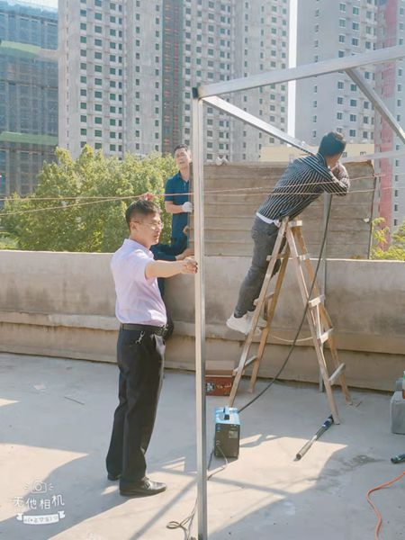 說干就干,立即行動。劉保國和左建華對樓頂平臺實地量測,記錄好尺寸。兩人一邊量著,一邊比劃著,對所需的材料做到心中有數(shù)。“采購材料的事兒,就交給我了。”設備材料科科長史永濤拿出電話就開始聯(lián)系起來。材料就位后,考慮到有些電焊的活兒需要專業(yè)的工人,劉保國趕緊聯(lián)系了一名電焊工。大家分工合作,你遞材料、我扶鋼管,你安裝、我綁線,邊干邊聊。30多度的高溫下,大家的額頭上直冒汗,但干勁兒絲毫沒減。防雨棚安裝完畢,新買的洗衣機放置到位,大家松了一口氣?!敖裉斓拇蠊こ探Y束了,趁著這次機會,咱們把宿舍的門窗都檢查一遍?!眲⒈f道,抬手擦了擦汗水,便拿起工具向宿舍走去。大家對宿舍的門窗逐一進行檢查,對破洞的紗窗進行了更換,對門上松動的把手進行了維修。