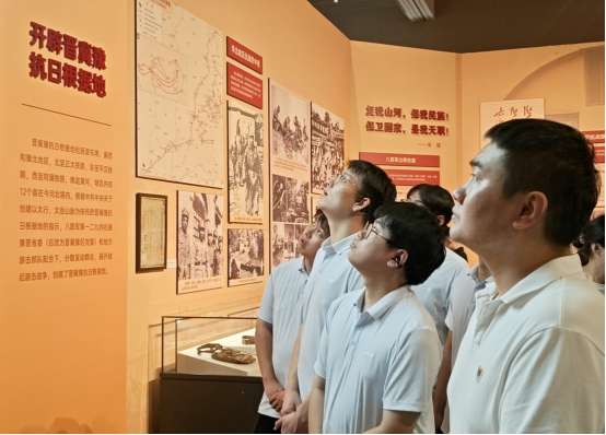 7月23日,分公司黨總支書記賈銀建帶領(lǐng)20余名職工步入河北省博物院“河北抗戰(zhàn)圖片檔案展”展廳,大家的目光隨著歷史脈絡(luò)逐步移動。在泛黃的電文手稿、磨損的軍用地圖、定格戰(zhàn)斗瞬間的黑白照片前,不時有人駐足凝視、低聲交流。當看到100多人的八路軍小部隊午夜分工突襲,最終以零傷亡繳獲了敵人一個騎兵連的戰(zhàn)略物資時,安全科侯麗霞拿出手機記錄細節(jié):“先輩們在極其艱苦的條件下能夠想出破敵良策,我們?nèi)缃衩鎸ぷ麟y點更應(yīng)積極探索破解方法,干出新成效。”來到“根據(jù)地建設(shè)”展區(qū),財務(wù)科李召燕指著減租減息和大生產(chǎn)運動的圖片感慨道:“這與我們當前各科室聯(lián)動推進項目工作的目的相同,要團結(jié)一心才能推進項目經(jīng)營管理取得更好成效?!眳⑴c活動的黨員干部紛紛表示,將把這份浸潤心靈的感悟轉(zhuǎn)化為“扎根崗位破難題,聚焦指標抓落實”的實際行動,勇挑重擔。青年職工也鄭重立下“傳承偉大抗戰(zhàn)精神,立足崗位強本領(lǐng)”的承諾,把工作做深做細做扎實,用實干詮釋責任。