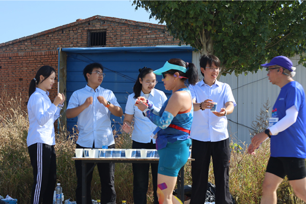 賽道上,秩序維護(hù)組的志愿者們化身“最熱情的指引者”??吹竭x手因路線不熟悉放慢腳步,立刻快步上前微笑指引,同時(shí)大聲喊出“加油!前方500米補(bǔ)給站”;遇到年長(zhǎng)選手體力不支,主動(dòng)遞上溫水,輕聲叮囑“調(diào)整呼吸,堅(jiān)持就是勝利”。補(bǔ)給站內(nèi),志愿者們更是以“秒級(jí)響應(yīng)”服務(wù)每一位選手。左手遞水杯、右手遞紙巾,動(dòng)作連貫嫻熟,還不忘根據(jù)選手狀態(tài)送上鼓勵(lì):“您跑得真棒,加油!”一句句溫暖的話語(yǔ)、一個(gè)個(gè)有力的手勢(shì),讓選手們瞬間充滿力量?!奥牭街驹刚吆啊佑汀哪且豢蹋杏X腿上又有了勁,他們比我還在意我的成績(jī),特別感動(dòng)?!币幻状螀⒓玉R拉松的年輕選手笑著說。