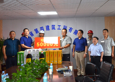 8月5日,河北省省直工會副主任馬永紅、辦公室主任馬濤,冒雨到四分公司石鋼項目部進行暑期慰問,為項目職工送上五谷雜糧、食用油等物品及慰問金。省四建公司黨委書記、董事長董富強,黨委副書記、工會主席李懷生一同參加。