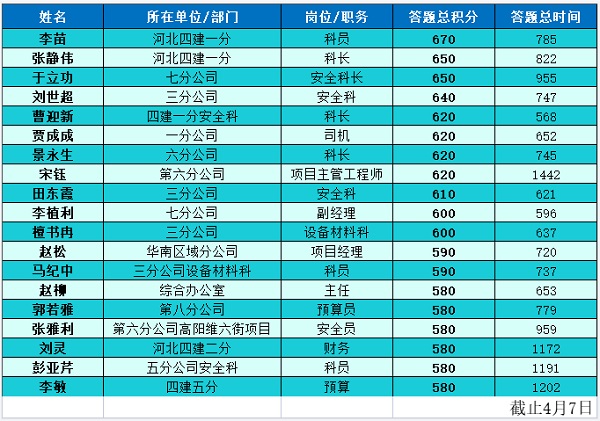本次活動(dòng)是繼“復(fù)工安全培訓(xùn)第一課”后,公司著眼網(wǎng)絡(luò)平臺(tái)優(yōu)勢的又一次運(yùn)用。安全管理部和宣傳部結(jié)合職工使用微信較普遍的實(shí)際,聯(lián)合推出了微信答題活動(dòng),以多樣化的方式開展培訓(xùn)教育,提高了“安全培訓(xùn)教育月”活動(dòng)實(shí)效。(安全管理部)