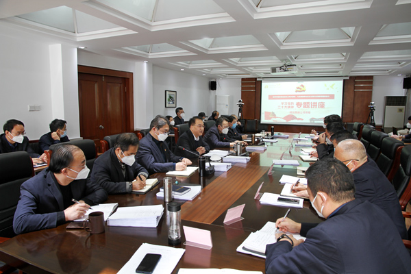 窗外寒風(fēng)陣陣,室內(nèi)暖意融融。2023年1月6日,公司領(lǐng)導(dǎo)班子成員、各部室負(fù)責(zé)人、各分公司主要負(fù)責(zé)人齊聚公司三樓會議室,聆聽公司黨委書記、董事長董富強作學(xué)習(xí)黨的二十大精神專題講座。