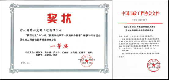 9月18日,公司收到中國市政工程協(xié)會《關于公布2023年度全國市政工程建設優(yōu)秀質(zhì)量管理小組獲獎名單的通知》文件,公司推薦參賽的成果獲得一等獎。