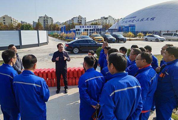 在會議室,結(jié)合項目施工情況,董富強強調(diào),要堅持高標(biāo)準(zhǔn)定位、嚴(yán)要求管理,在安全、質(zhì)量、成本等方面做到“六個強化”,建成四建品牌工程,展現(xiàn)公司良好形象。一是強化安全管控,提高政治站位,落實文明施工、揚塵防治各項要求;時刻繃緊安全這根弦,采取多種形式狠抓現(xiàn)場安全教育培訓(xùn),進(jìn)一步增強全員安全意識。二是強化質(zhì)量管理,對于正在施工的綜合樓,工程體量大,質(zhì)量標(biāo)準(zhǔn)要更高、過程管理要更細(xì),務(wù)必壓實各方責(zé)任,嚴(yán)格按照方案組織施工。三是強化成本管控,從材料采購到勞務(wù)單價等各個環(huán)節(jié),都要精細(xì)化管理,積極采用新技術(shù)、新工藝,促進(jìn)降本增效,提高項目盈利水平。四是強化人才培養(yǎng),要樹立建樓育人理念,著力發(fā)揮“師帶徒、老帶新、傳幫帶”作用,助力青年職工成長成才。五是強化宣傳工作,凝聚思想共識,營造干事創(chuàng)業(yè)濃厚氛圍。六是強化勞務(wù)實名制管理,有效規(guī)避用工風(fēng)險,做好維穩(wěn)工作。