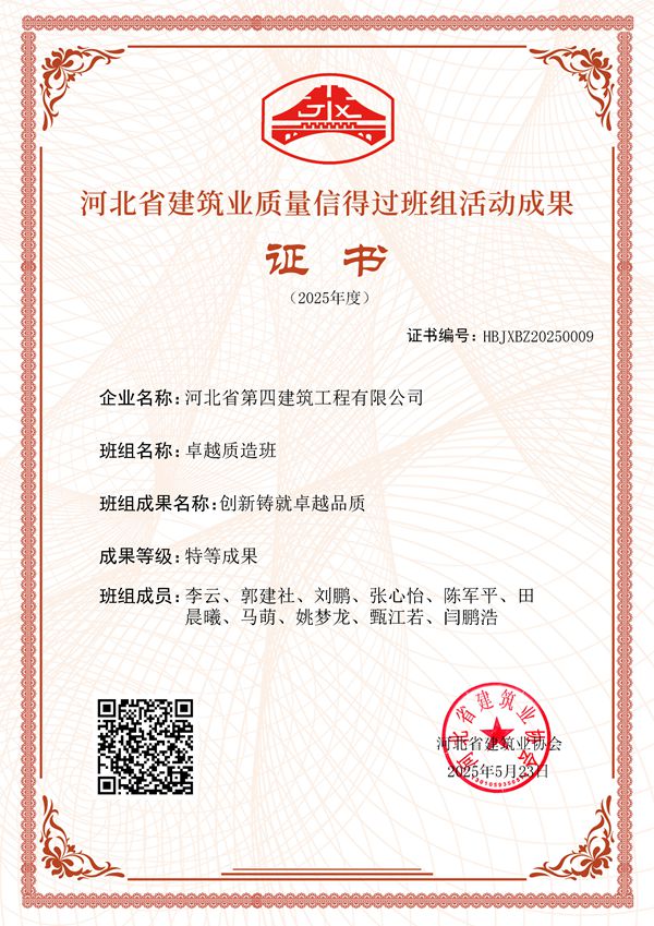 5月25日,三分公司收到河北省建筑業(yè)協(xié)會(huì)關(guān)于2025年度河北省建筑業(yè)質(zhì)量信得過(guò)班組活動(dòng)結(jié)果的通報(bào),由分公司“卓越質(zhì)造班”班組完成的“創(chuàng)新鑄就卓越品質(zhì)”成果,被評(píng)為“特等成果”。