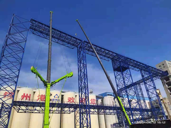 6月16日,下午15時,由一分公司承建的錦州港糧食物流一期項目順利完成大型鋼結(jié)構(gòu)吊裝的重大節(jié)點。