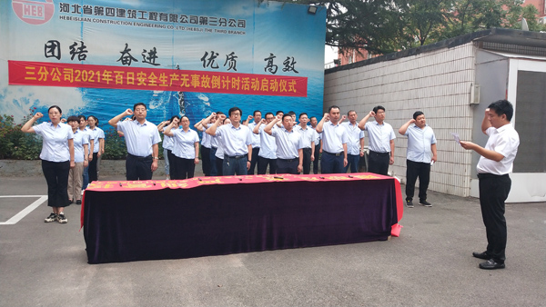 9月18日上午,三分公司組織機(jī)關(guān)全體職工在分公司院內(nèi)舉行了第十八次“百日安全生產(chǎn)無事故倒計時”活動啟動儀式,分公司經(jīng)理李書偉帶領(lǐng)職工進(jìn)行安全宣誓,隨后大家在印有“履職盡責(zé),嚴(yán)細(xì)管控”活動主題的條幅上簽名。各項目部也相繼開展了倒計時活動啟動儀式。