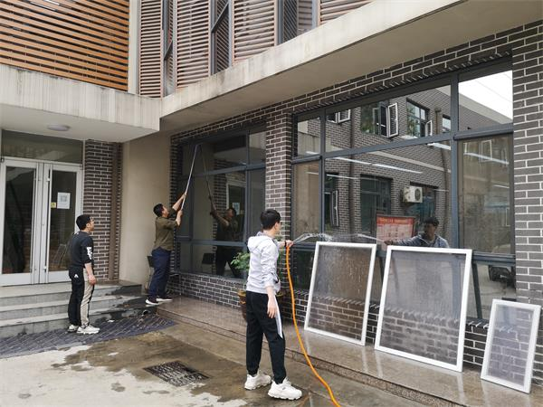 本次活動主要針對設(shè)計院的公共衛(wèi)生區(qū)域。先是擦玻璃,職工孟榮榮說:“用報紙擦吧,以前都用報紙擦,擦得很干凈?!薄澳嵌际抢宵S歷了,現(xiàn)在都用擦玻璃神器啦,我早準(zhǔn)備好了。”趙蓓說。只見趙蓓拿出自帶了“刮水”功能的擦玻璃神器,沾上洗潔精水,吸附到玻璃窗上,不一會兒就把玻璃擦得干干凈凈。一樓設(shè)計室的外窗高,綜合辦準(zhǔn)備了加長桿的玻璃刮子,司南帶領(lǐng)幾名青年職工認(rèn)真擦拭,使窗戶變得潔凈透亮。接下來打掃辦公區(qū)域,職工們不放過一個盲區(qū)、不落下一個角落。大家對辦公室、樓道、衛(wèi)生間的衛(wèi)生死角進(jìn)行清掃、噴灑消毒;對打印機、飲水機、儲物柜等公用設(shè)備進(jìn)行擦拭消毒;對門把手、沖水按鈕、水龍頭開關(guān)等擦拭消毒。室內(nèi)清理完后清理小花園,大家拿著掃把、鏟子等工具,清掃拔除雜草,撿拾花池的雜物,清理衛(wèi)生死角,經(jīng)過兩個小時的勞動,辦公環(huán)境內(nèi)外煥然一新。