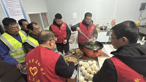 項目務(wù)工人員大多是當?shù)卮迕?,離家較近的務(wù)工人員常自帶飯菜加熱食用。然而,天氣寒冷或加班時,飯菜容易變涼??紤]到這一點,項目部志愿者團隊聯(lián)合食堂師傅,為工人們準備了熱餐器具,并額外提供免費雞蛋湯,讓大家在繁忙的施工之余,感受到家一般的溫暖。這一舉措不僅讓工友們吃得安心、干得舒心,更激發(fā)了大家的工作熱情,為施工生產(chǎn)注入了強勁動力。